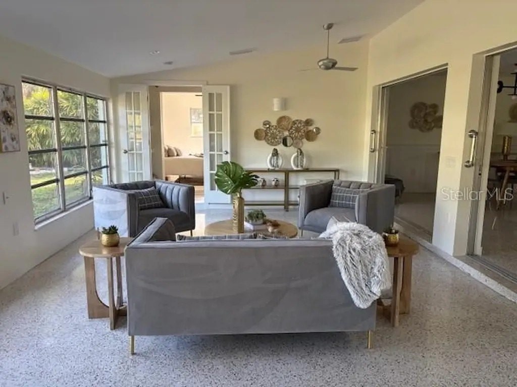 Tucked away in the historic Museum District you will find an impeccable example of mid-century modern architecture. This classic home is perfectly situated on a large corner lot & boasts the clean, sleek lines that were so common during this period. Step inside the front door to beautifully refinished terrazzo floors that extend throughout the home. The thoughtfully designed layout maximizes space and natural light. A full wall of sliding glass doors pockets completely into the wall, creating seamless indoor-outdoor living and opening the main living area to a spacious Florida Room filled with windows overlooking the private backyard. The bedroom wing includes a primary suite, two generously sized guest bedrooms, and two bathrooms that retain their original 1950s and 1960s character. Tons of updates and upgrades. We will provide you with a list.